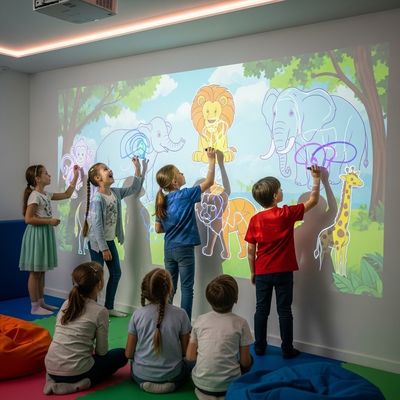 Laissez le système de peinture murale interactive inspirer la créativité des enfants et améliorer leurs compétences physiques.C'est une ressource qui gamifiera l'art pour vous guider dans l'apprentissage de la créativité.L'interactivité continue d'impliquer les enfants, encourageant la socialisation et l'exercice.