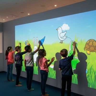 Le jeu de peinture par projection est facile à utiliser. Un enfant dessine un animal sur le dispositif tactile fourni. Le dessin est projeté par le système sur le mur et animé et y joue.Lorsque vous caressez l'animalIl s'agit d'une combinaison parfaite d'art et de science.